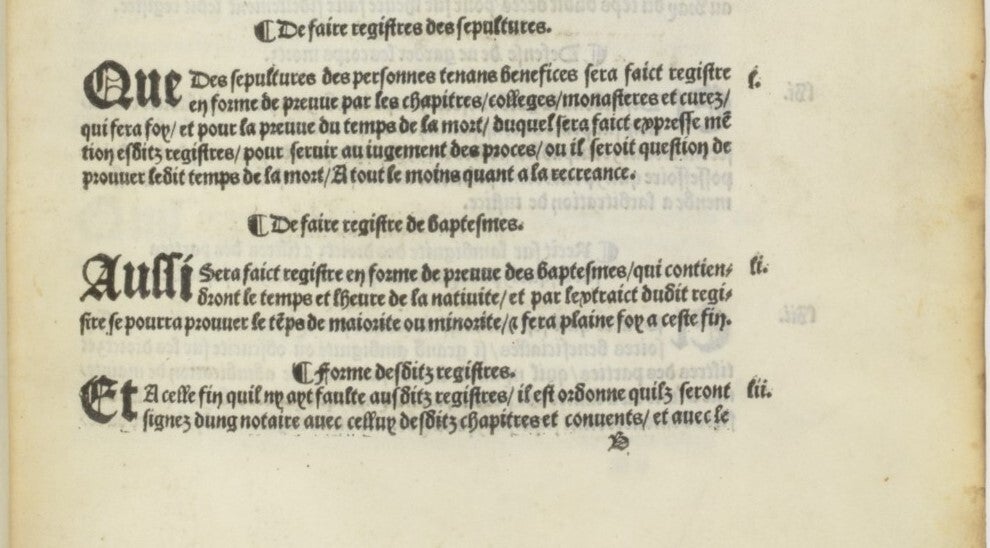 , comme François Ier avec l'ordonnance de Villers-Cotterêts en août 1539, nous pouvons retracer l'histoire de familles sur près de cinq siècles. Cette ordonnance, notamment ses articles 50 et 51, est la pierre angulaire de la généalogie en France, établissant la création des registres paroissiaux pour les baptêmes et sépultures, applicables à tous, catholiques comme protestants. C'est une date capitale pour les généalogistes, car elle rend accessible des preuves d'ascendance précieuses qui étaient rares avant cette période, sauf pour certaines familles nobles ou bourgeoises.